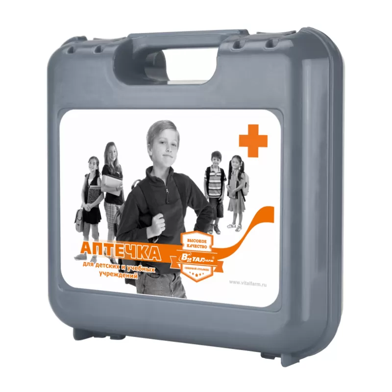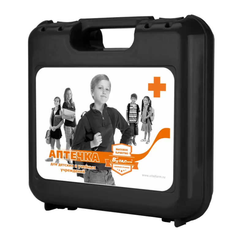 Пластиковый футляр в ассортименте, может быть любой из представленных на фотографиях или незначительно отличаться.Аптечка для оказания первой помощи с применением медицинских изделий в организациях, осуществляющих образовательную деятельность по ТУ 21.20.24-072-85535470-2024.