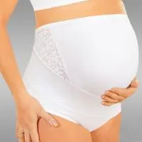 - Эластичная лента-пояс прилегает сзади к области поясницы, а спереди проходит под животом, растягивается по мере его округления