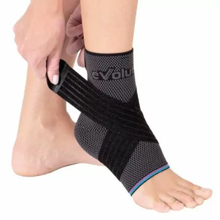 - Эластичная лента оборачивается вокруг стопы и голеностопного сустава по типу восьмёрки.