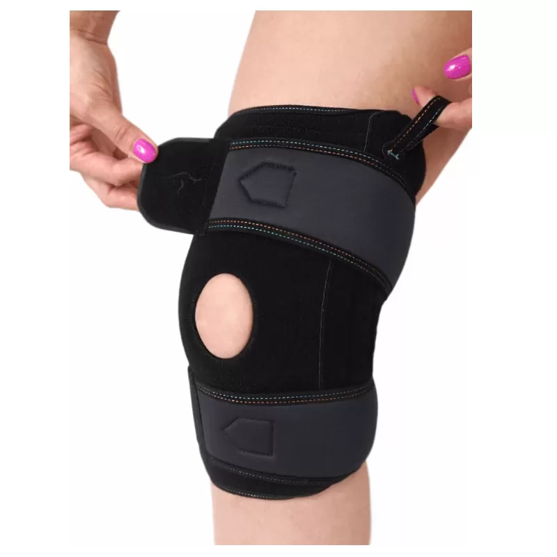 - надежно поддерживает коленную чашечку при помощи пателлярного кольца, а массажные ребра на нем улучшают местное кровообращение, что ускоряет процесс восстановления.