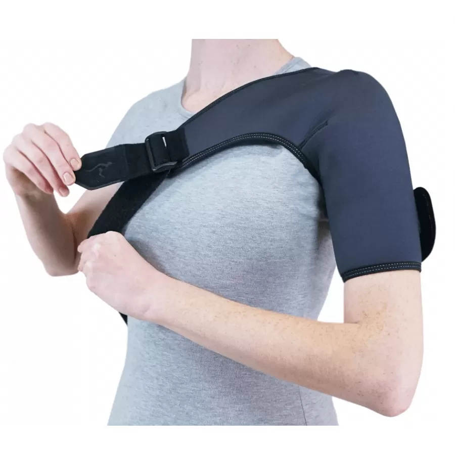 - Бандаж умеренной фиксации подходит людям любой комплекции как для реабилитации, так и для профилактики травм и воспалений плечевого сустава, создает комфорт и удобство ношения за счет «дышащего» материала и анатомической формы.