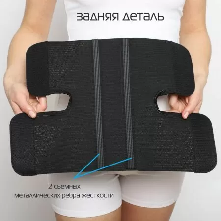 - На спинке изделия есть 2 съемных ребра жесткости, которые улучшают фиксацию, поддерживают позвоночник, предотвращают скручивание бандажа