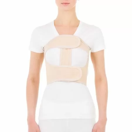 - имеет анатомическую форму, позволяющую оптимально разместить бандаж на грудной клетке женщины
