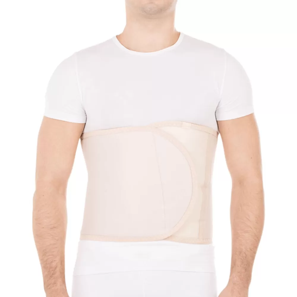 - зафиксировать застежку бандажа в зависимости от места расположения послеоперационного шва;