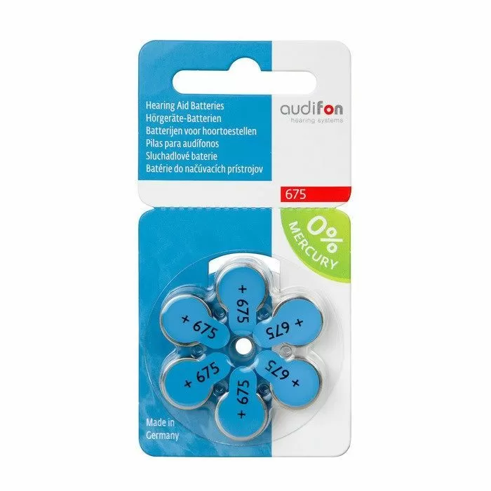 - Благодаря своей мощности, батарейки для слуховых аппаратов 675, обеспечивают длительную и качественную работу заушных слуховых аппаратов. Плюсом данных батареек является их безопасность, т.к. батарейки Audifon являются воздушно- цинковыми и не имеют в своем составе ртути. Они имеют больший срок службы и выделяют большее количество энергии, чем батарейки других типов. Длительность работы батарейки может достигать 168 часов непрерывного использования в стандартном режиме.