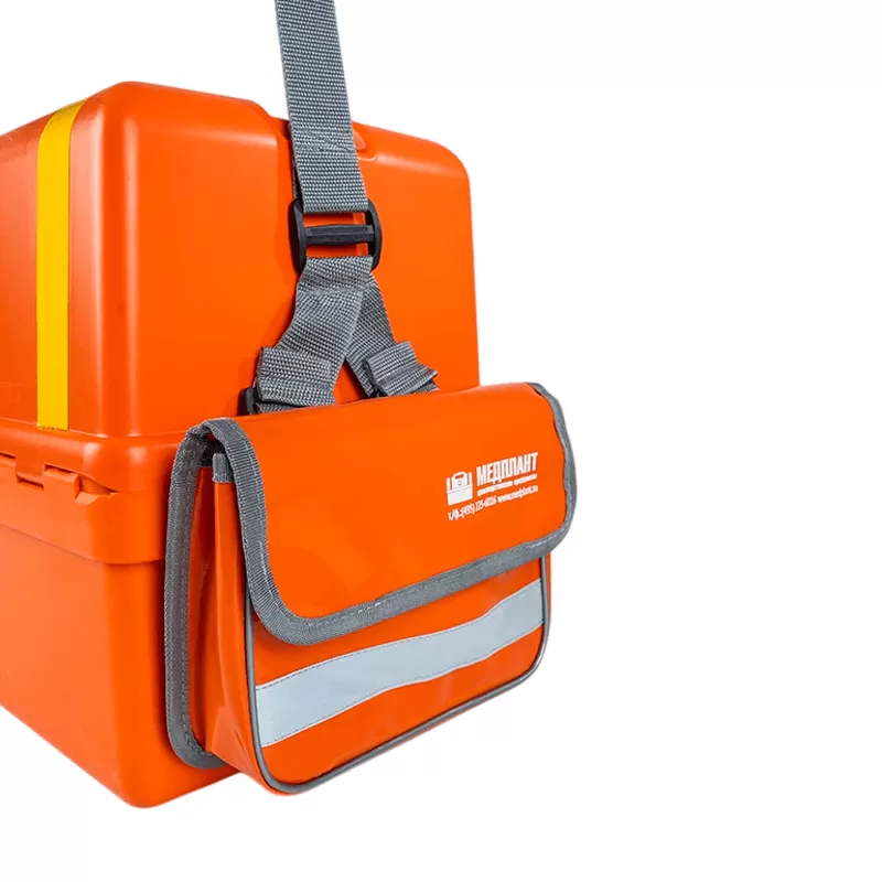 Сумка-чехол крепится на боковой стороне медицинской пластиковой укладки.