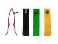 Клеммы электродов изготовлены из сплава серебро-хлорид серебра и обладают универсальным зажимом. Конечностные электроды различаются цветными скобами-захватами (красные, желтые, зеленые, черные), при помощи которых они крепятся на конечности пациента.