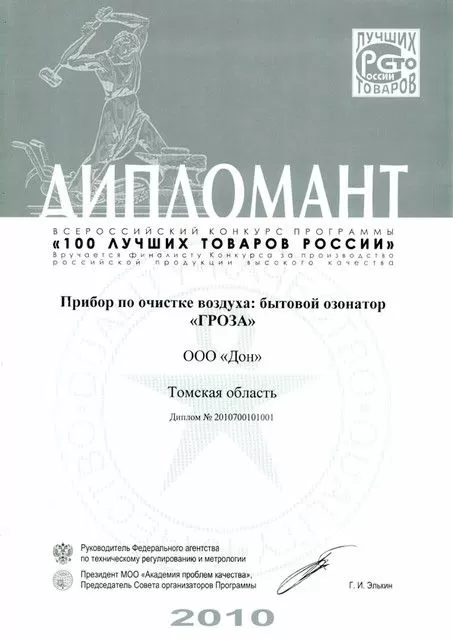 - Озонатор бытовой "Гроза" предназначен для обработки воздуха и продуктов питания.