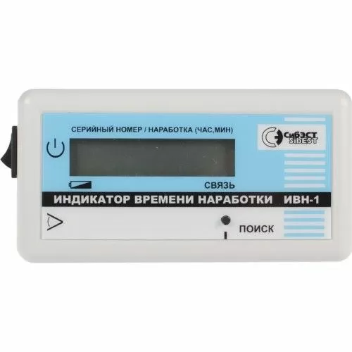 Прибор выполнен в прямоугольном пластмассовом корпусе. На передней панели находятся ЖКИ (дисплей для отображения текущей информации), кнопка управления ПОИСК. На левом торце корпуса расположен выключатель питания и окно ИК-связи. Доступ в отсек для элементов питания осуществляется через крышку на задней панели. После подачи питания на дисплее высвечивается сообщение о готовности прибора к очередному циклу поиска счетчиков времени наработки. Для считывания информации, хранящейся в счетчиках времени наработки, окно ИК-связи прибора необходимо направить в сторону световых индикаторов счетчиков (светодиоды «Ресурс») с расстояния 3 – 5 метров от облучателя и 2 раза нажать на приборе кнопку управления ПОИСК. При этом на индикатор кратковременно выводится сообщение об установлении связи (знак СВЯЗЬ – «V») и начинается чтение прибором данных счетчика времени наработки. На дисплее поочередно отображается номер счетчика и время наработки в часах и минутах.