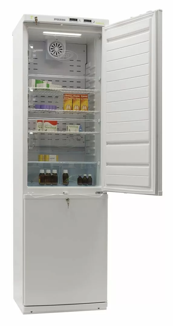 Предназначен для работы в лабораториях различных направлений и диагностических центрах (ПЦР, биохимические, иммунологические и гематологические исследования), на станциях переливания крови и в серологических лабораториях, при оснащении аптек, аптечных производственных отделений и фармацевтических предприятий, прививочных кабинетов. Холодильник обеспечивает потребность в хранении лекарственных препаратов, средств, образцов, тест-наборов и других фармацевтических средств при температуре от +2°С до +15°С в холодильной камере и при температурах от минус 10°С до минус 25°С в морозильной камере. Основные характеристики: 2 микропроцессорных регулятора температур со сверхчувствительными датчиками температуры, система принудительной циркуляции воздуха в холодильной камере, в холодильном отделении дверь стеклянная с замком, в морозильном отделении дверь металлическая с замком, автоматическое поддержание температуры в камерах, сигнализация при отклонении температуры от заданной, отображение температуры на табло панели управления, отключение вентилятора при открывании двери.