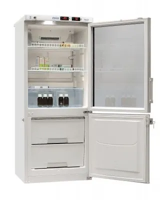 - Холодильник комбинированный лабораторный ХЛ-250 «Pozis» (с одной стеклянной тонированной и одной металлической дверью) предназначен для работы в лабораториях различных направлений и диагностических центрах (ПЦР, биохимические, иммунологические и гематологические исследования), на станциях переливания крови и в серологических лабораториях, при оснащении аптек, аптечных производственных отделений и фармацевтических предприятий, прививочных кабинетов