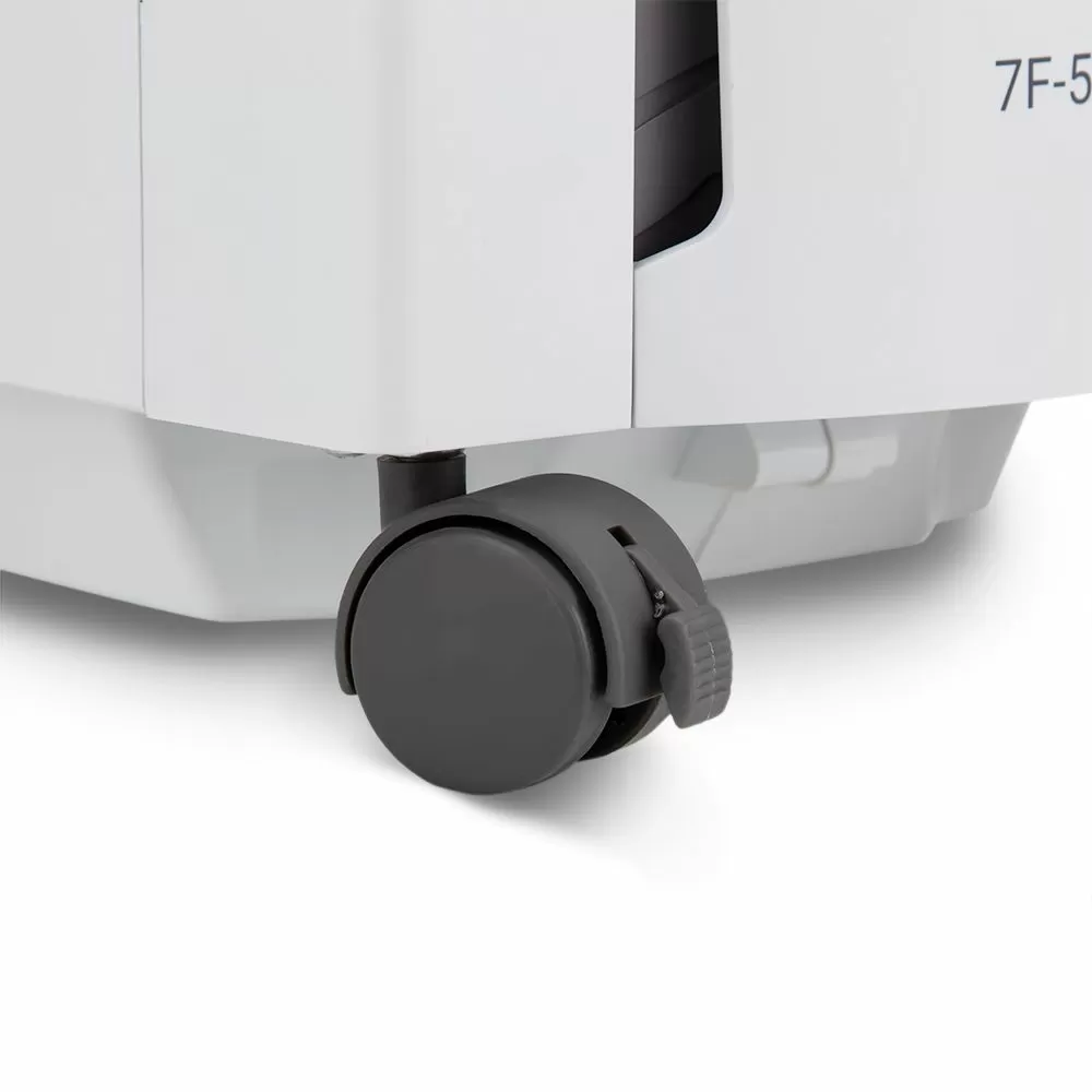 - Корпус концентратора кислорода выполнен из надежного ударопрочного пластика и снабжен удобными боковыми ручками, а также колесными опорами для легкого перемещения по дому.