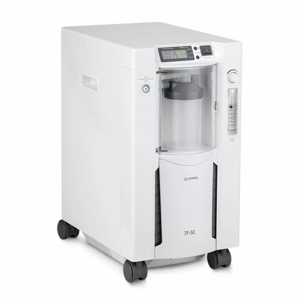 - Модель концентратора производит до 5 л воздушно-кислородной смеси в минуту. Концентратор Армед 7F-5C – прекрасный выбор для использования дома, в медучреждениях, кислородных барах, спортзалах, косметологических кабинетах. Эта модель станет любимым устройством детей, обожающих кислородные коктейли.
