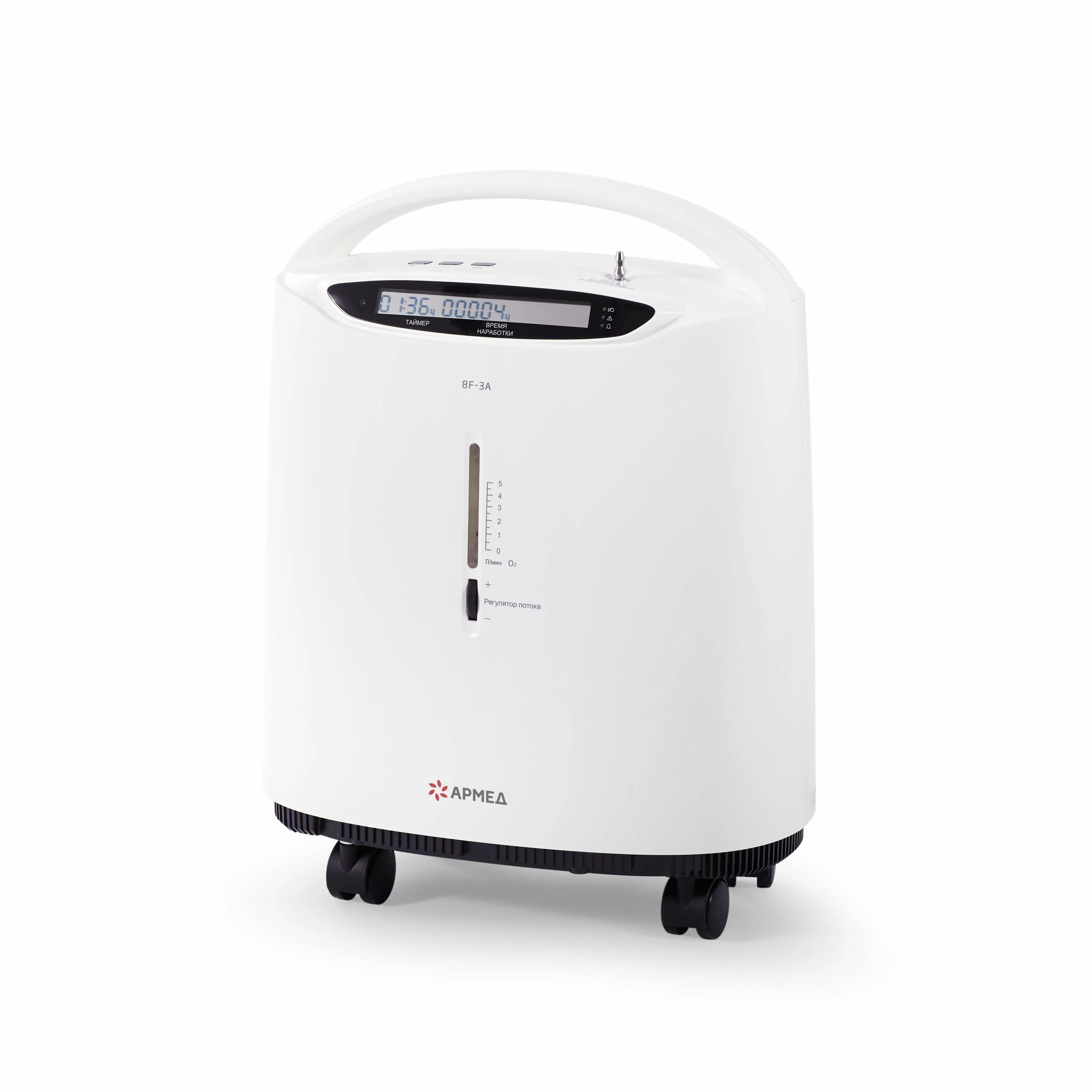 - Концентратор кислорода, по необходимости, можно легко переместить в другое помещение за счет послушных маневренных колес с фиксаторами. Лаконичный дизайн позволит прибору удачно вписаться в любое из них!