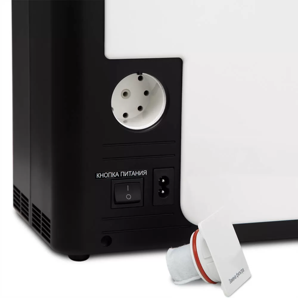 - С помощью кнопок, расположенных под дисплеем, можно включить и выключить прибор, установить таймер и отрегулировать скорость потока, а также включить режим анионов. Кроме того, концентратором можно управлять дистанционно с помощью беспроводного пульта, обладающего теми же функциями, что и панель управления.
