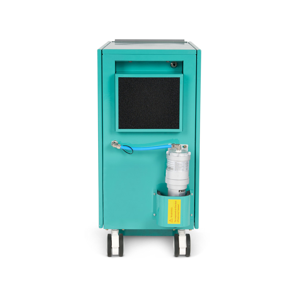 - Оборудование имеет два уровня фильтрации воздушного потока - фильтры грубой и тонкой очистки. Фильтр грубой чистки легко и удобно чистить, он находится в кожухе на задней стенке корпуса. Фильтр тонкой очистки также легко заменить, откры боковую панель за левой дверцей аппарата.