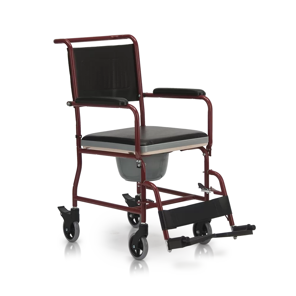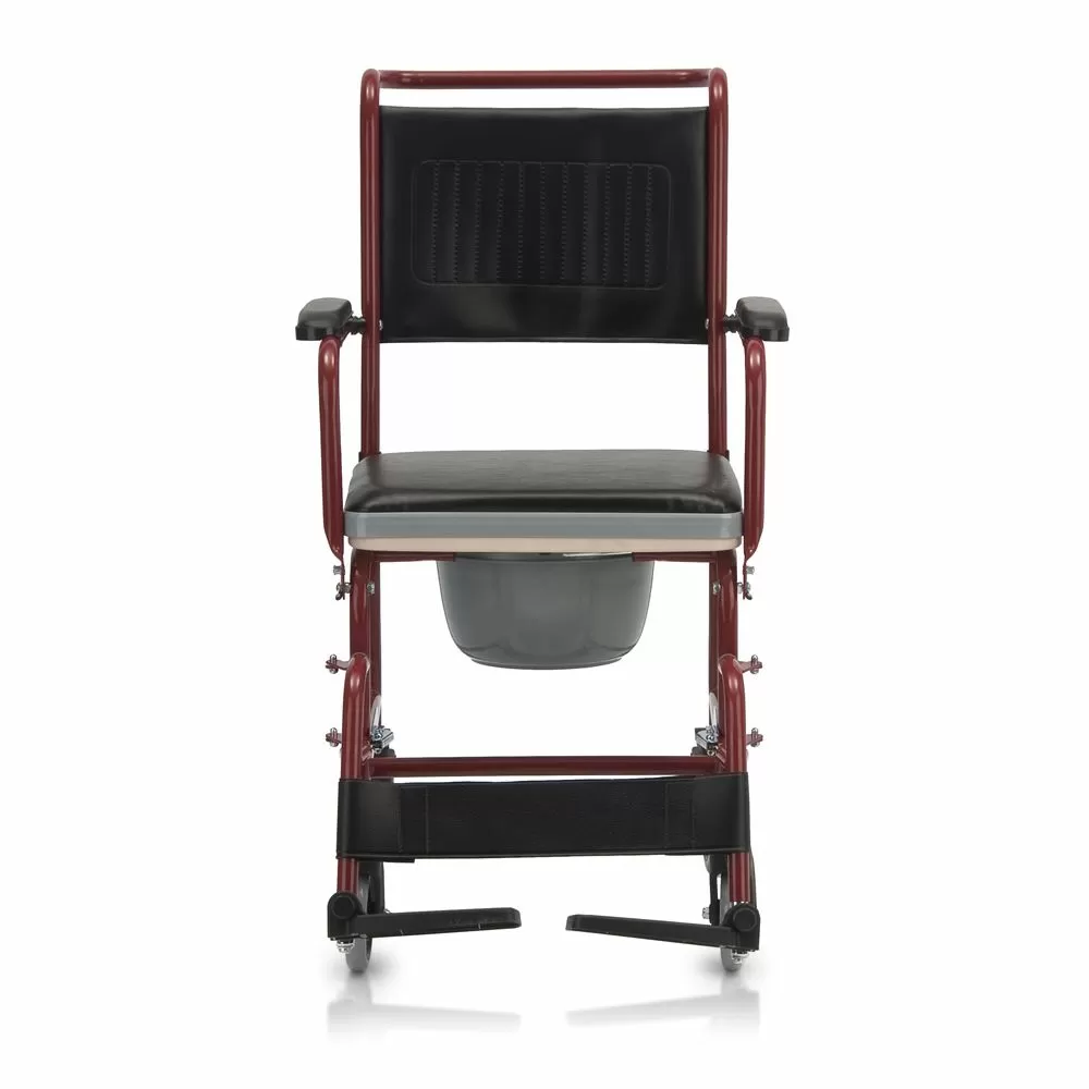 Удобное сиденье и спинка из кожзама, легко устанавливать над унитазом; Откидные подлокотники |