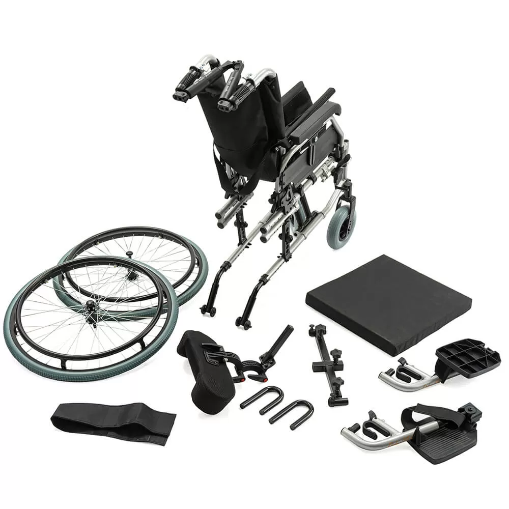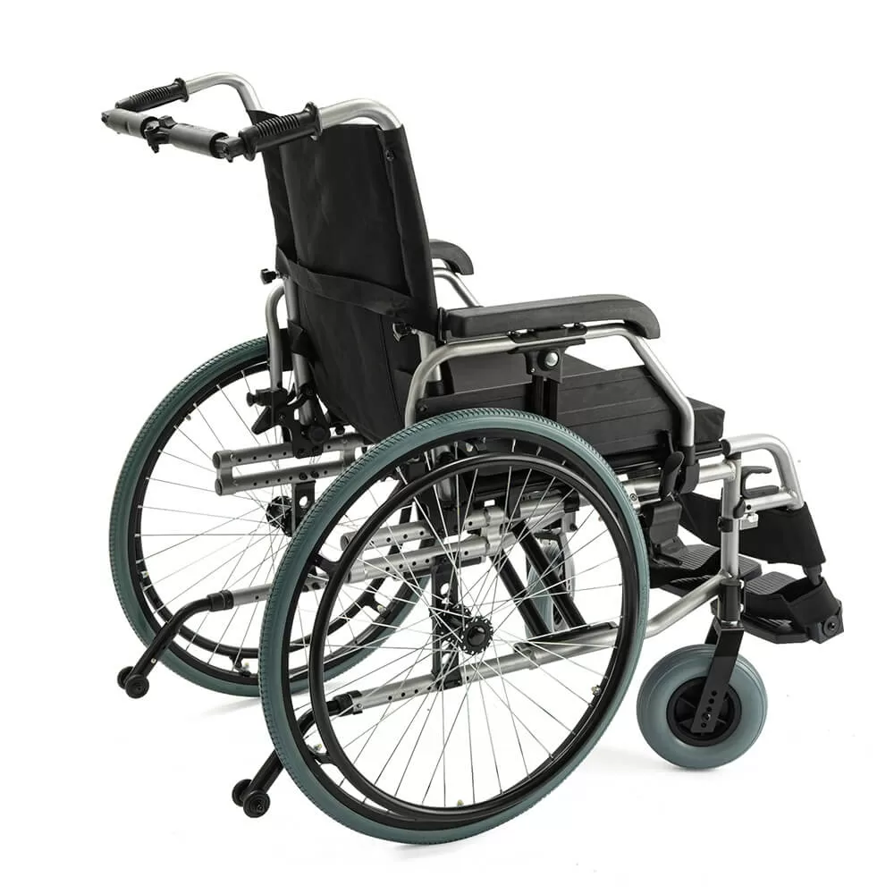 - Адаптивность под пользователя: ширина сиденья регулируется в диапазоне 43-48 см, глубина — 45-56 см, а подлокотники с регулировкой по высоте позволяют идеально подогнать коляску под анатомические особенности и потребности пользователя.