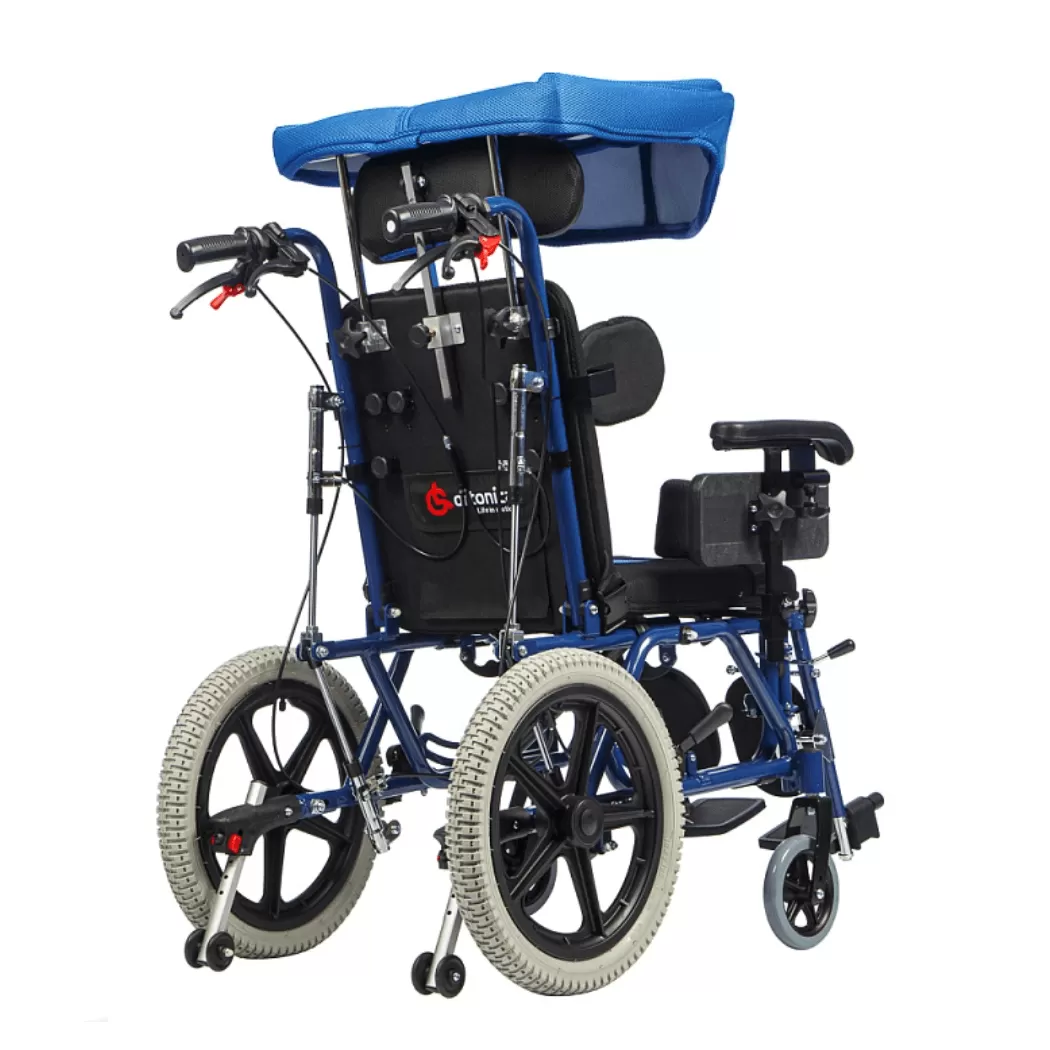 - Ручки для сопровождающего лица, оснащенные рычагами для плавной регулировки угла наклона спинки и сиденья и системой торможения