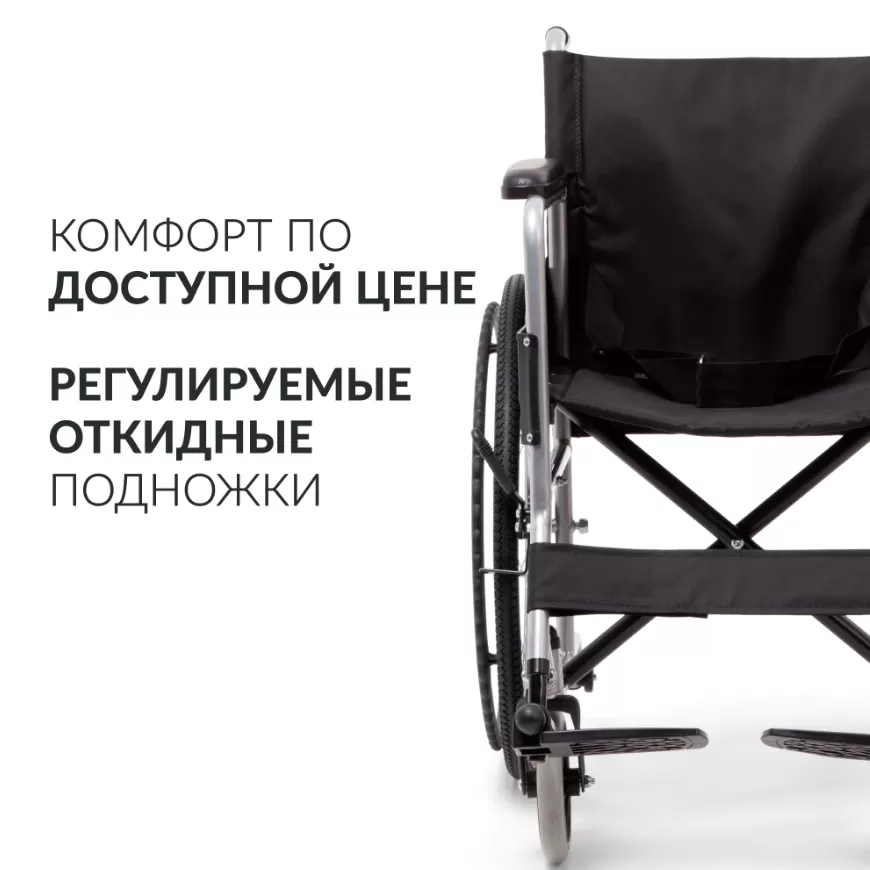 - Конструкция позволяет откидывать подножки наверх, что облегчает пересаживание пользователя. Настроить максимально удобное расположение ног получится с помощью функции регулировки высоты подножек.