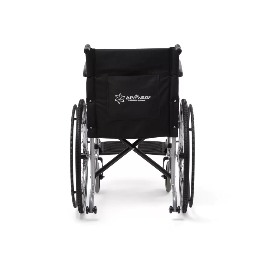 - Удобство сопровождающему обеспечивают ручки с прорезиненными рельефными накладками. На спинке кресла предусмотрен вместительный карман, в который можно положить воду, телефон, салфетки.