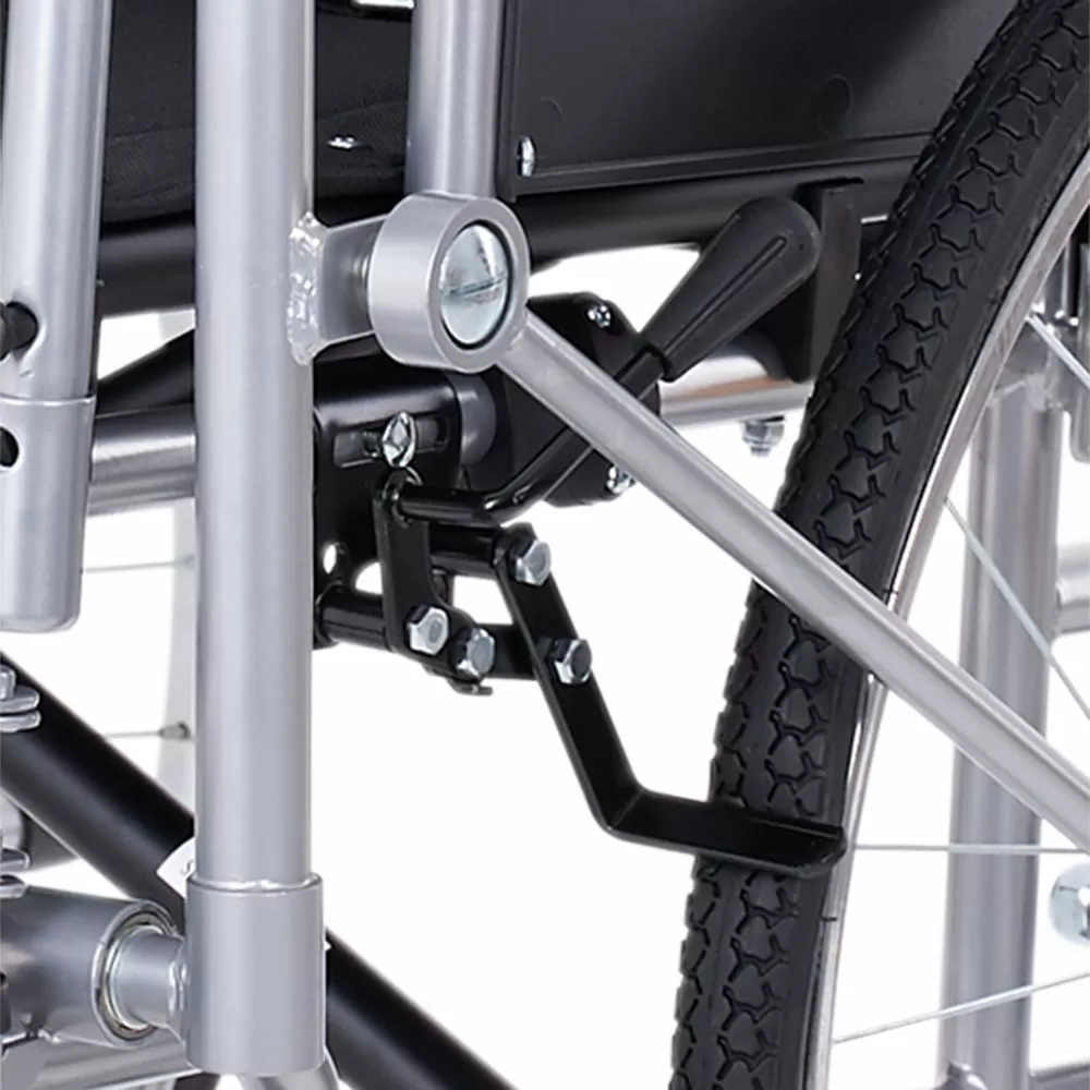 - Коляска оборудована рычажным управляющим механизмом – рулевого и тягового рычагов. С их помощью пациент сможет самостоятельно управлять коляской, меняя скорость передвижения и направление. Рулевой рычаг расположен под правую руку.