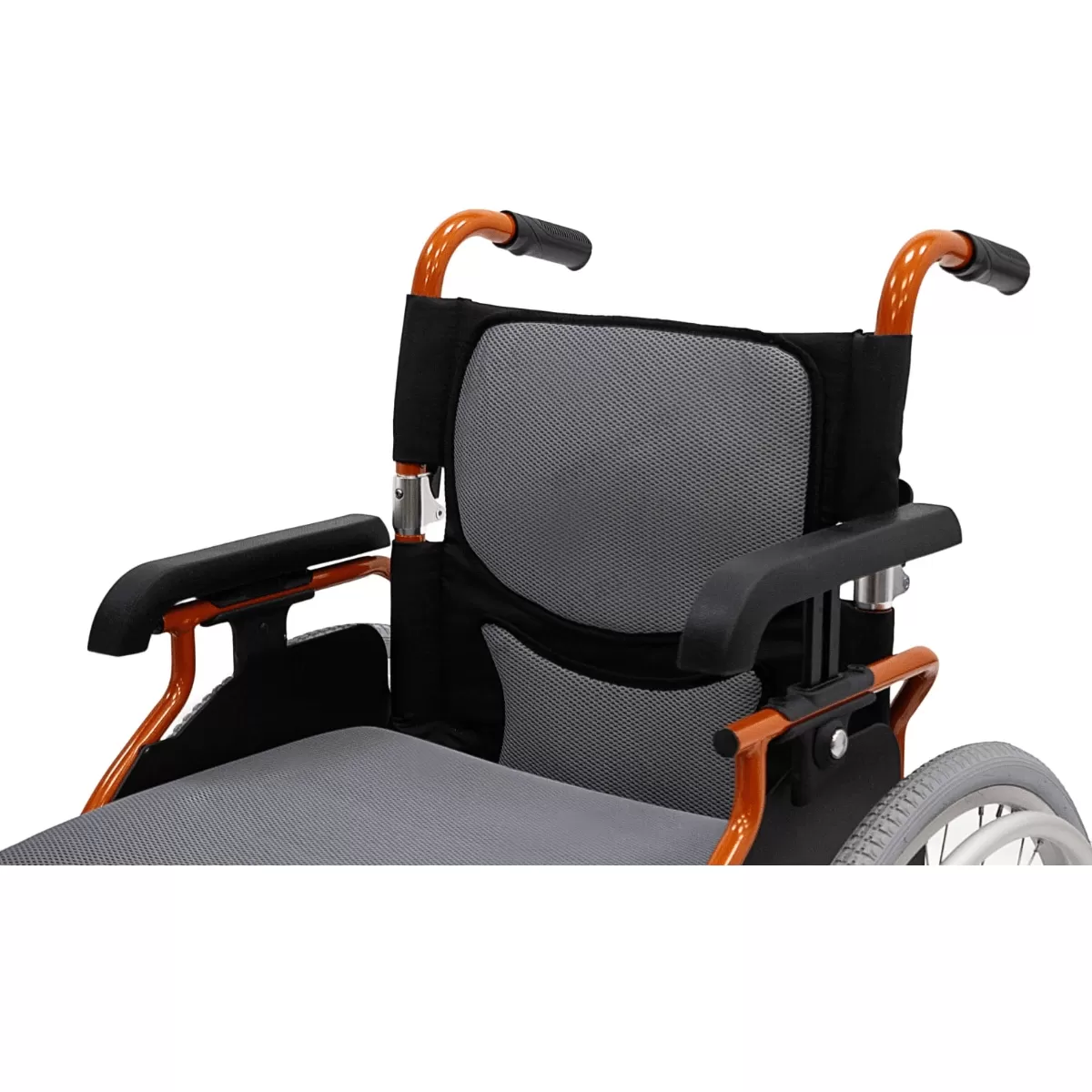 - Откидные подлокотники, регулируемые по высоте, с поручнями из цельных кусков пенополиуретана, оборудованы матовыми боковыми стенками.