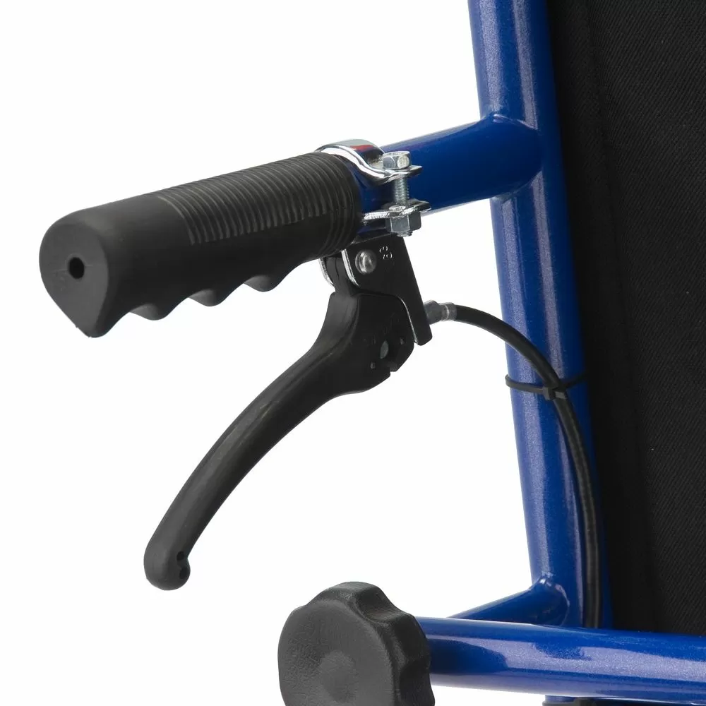 - Колесная база модели представлена передними литыми и задними пневматическими маневренными колесами. Преодолевать уклоны и бордюры без риска завалиться назад помогут антиопрокидыватели с противоскользящими наконечниками. Надежно зафиксировать коляску на время остановки позволяют боковые стояночные тормоза.