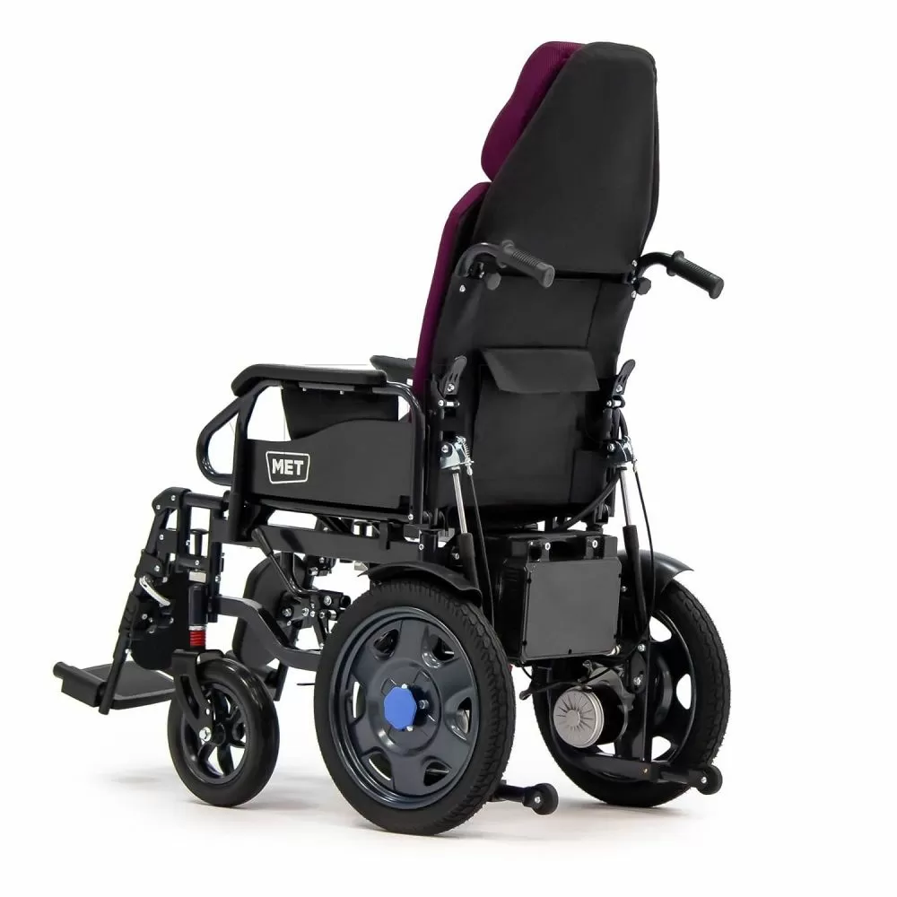 Коляска MET COMFORT 110 имеет механизм, который защищает кресло от опрокидывания и обеспечивает максимальную безопасность пользователю. Спинку кресла можно откинуть назад для большего комфорта, также можно поднять подножки, чтобы принять горизонтальное положение. Контроллер можно разместить как слева, так и справа от пользователя. На нём есть кнопки для подачи звукового сигнала, переключения скоростей, а также функции SOS и отключения звука. Управление движением осуществляется с помощью джойстика.Проходимость и ходовые качества