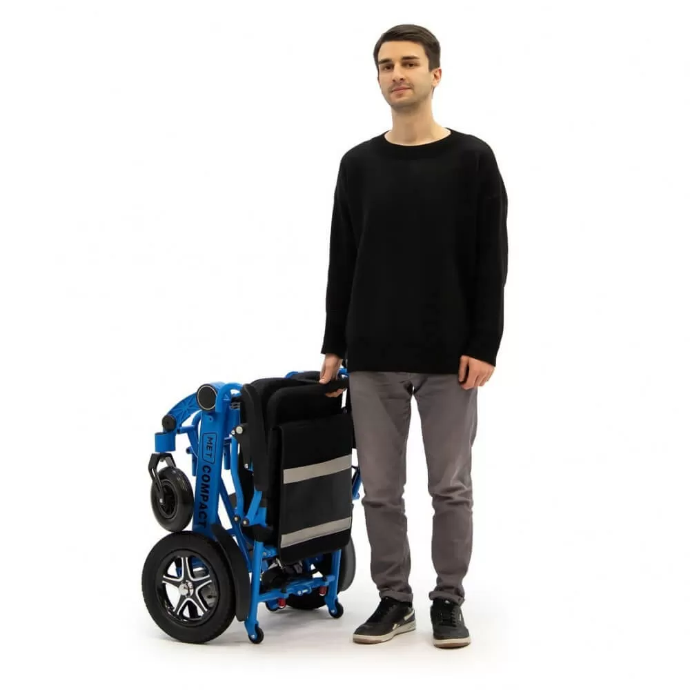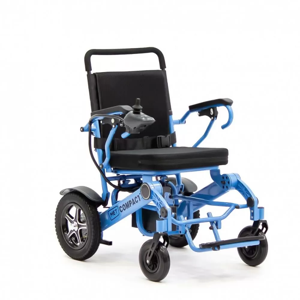 Кресло-коляска оборудовано двумя двигателями мощностью 250 Вт. Наибольшая скорость, которую развивает MET COMPACT 35, составляет 6 километров в час, а дистанция, преодолеваемая коляской на одном заряде, достигает 20 километров. Однако дальность хода на одном заряде может варьироваться в зависимости от скорости движения, веса пользователя, качества дороги и манеры вождения.Характеристики