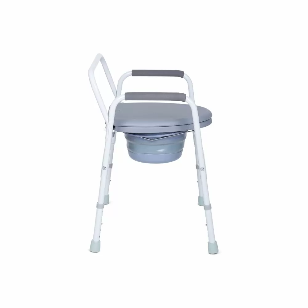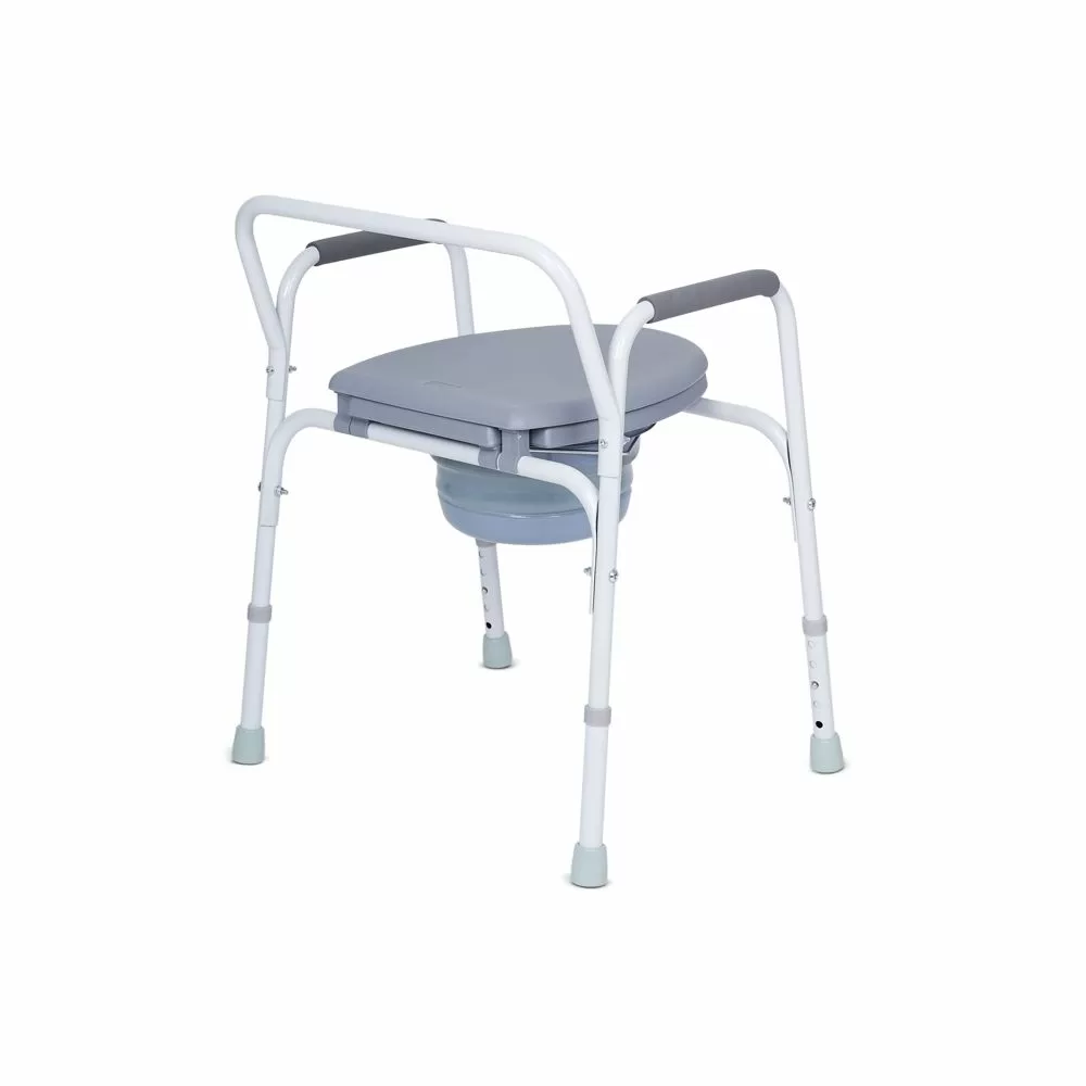- Сиденье кресла аналогично обычному сиденью для унитаза, поэтому привычно в использовании. Сиденье дополнено крышкой, которая откидывается наверх до определенного уровня. Высота сиденья регулируется от 42,5 до 52,5 см.