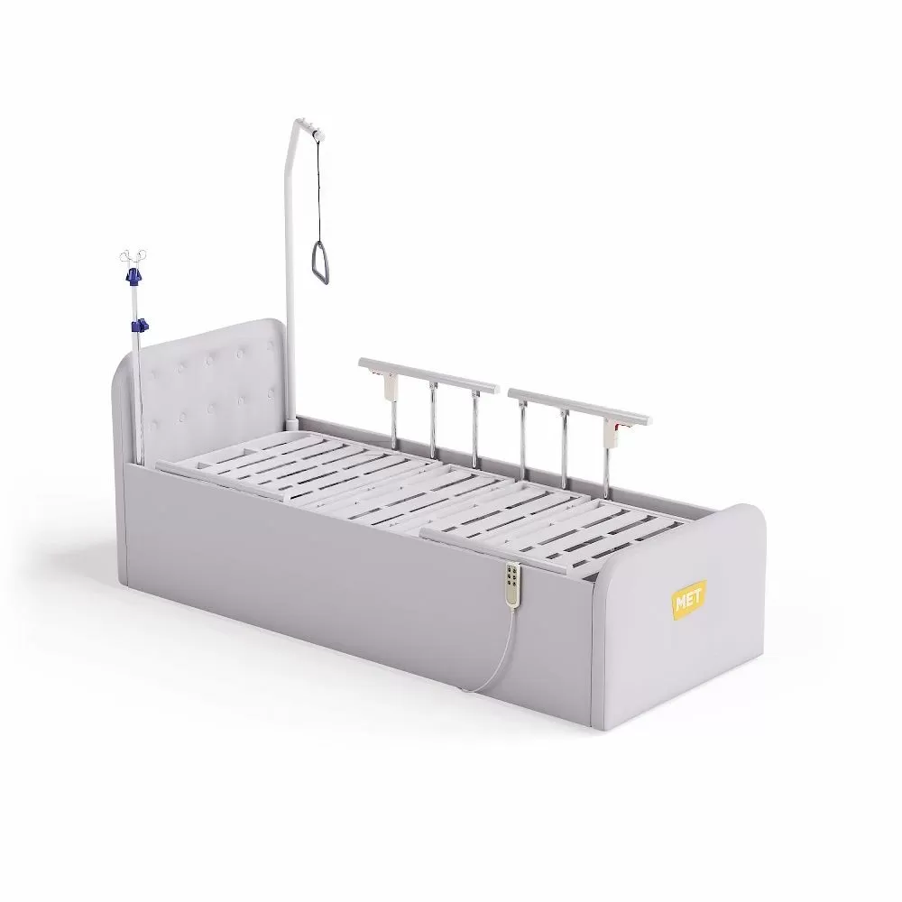 Изголовье кровати оборудовано четырьмя специализированными отверстиями: два используются для надежного крепления инфузионной стойки, а два других — для установки штанги для подтягивания с регулируемой рукояткой.