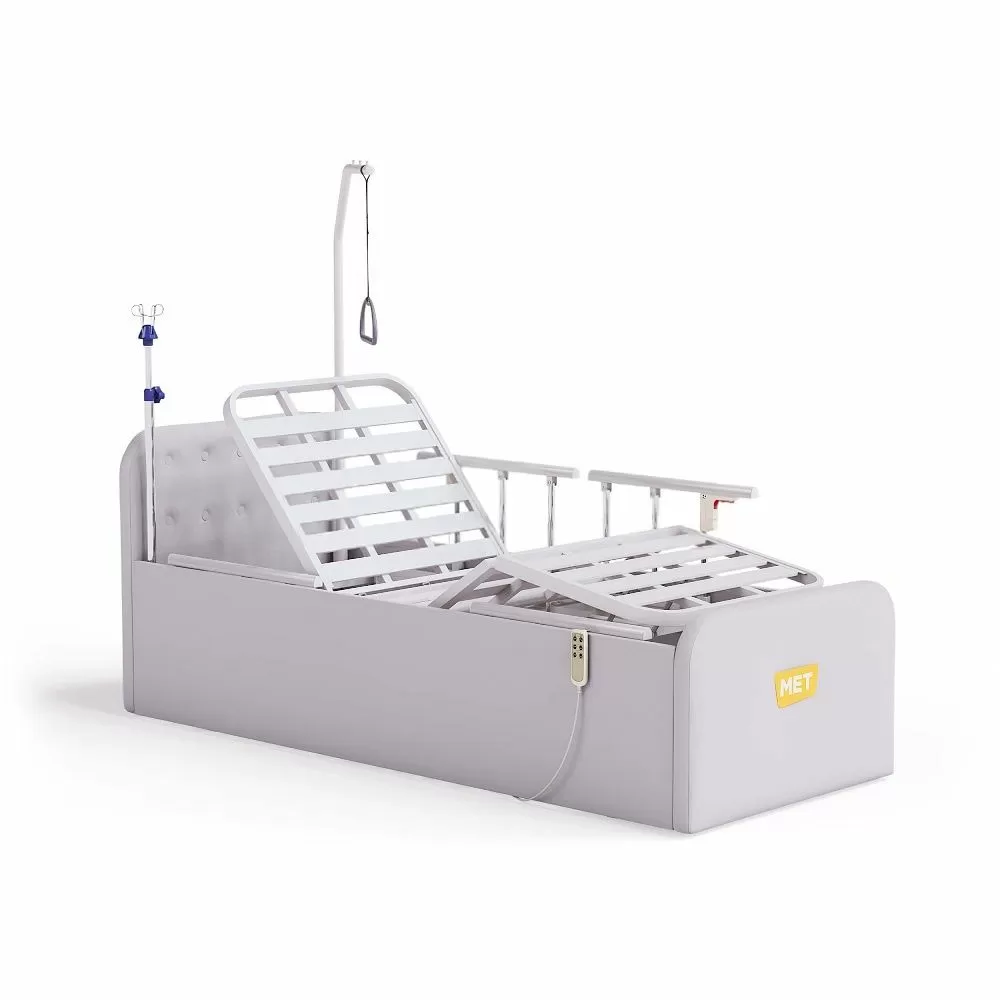 Кровать оборудована интуитивно понятной системой управления - проводной пульт позволяет плавно регулировать высоту изголовья и ножной части, обеспечивая максимальный комфорт для пациента. Легкие алюминиевые ограждения с быстрым механизмом опускания обеспечивают удобный доступ к пациенту. Конструкция рассчитана на нагрузку до 200 кг.