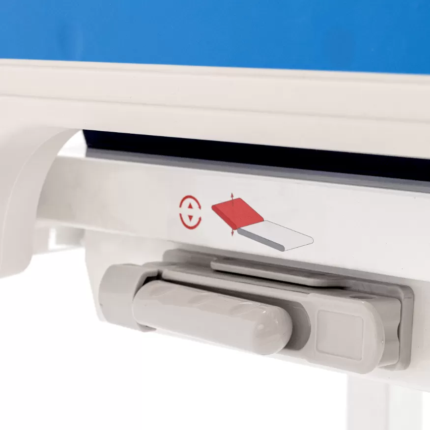 Основа рама кровати изготовлена из стали и покрыта высококачественным порошковым покрытием, что обеспечивает качественную и долгосрочную защиту от внешних воздействий, а также устойчивость к дезинфицирующим средствам.