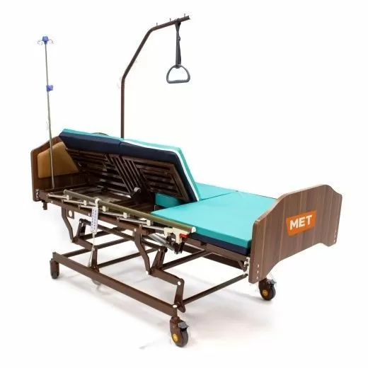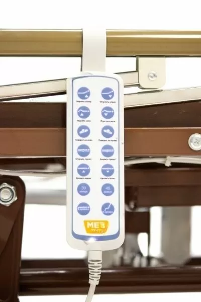 Функциональная кровать с электроприводом, электрифицированной функцией переворачивания и туалетным устройством. Головная секция имеет "ушки", что позволяет больному отдыхать и спать в сидячем положении.Кровать оснащена быстросъёмными спинками. Сняв ножную спинку можно осуществить полноценный выход из кресла.