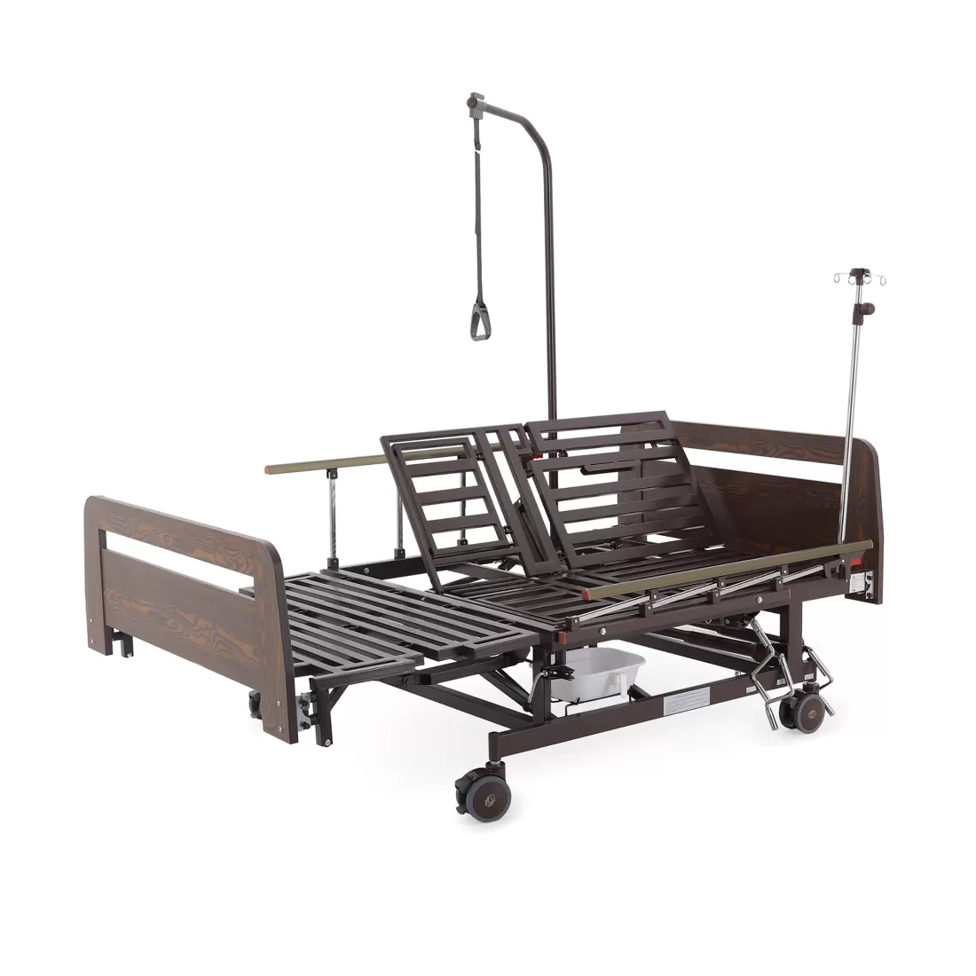 - туалетное устройство — медицинская кровать с туалетом позволяет пациенту избежать лишних движений при справлении естественных надобностей, что очень важно при тяжелых травмах и заболеваниях.