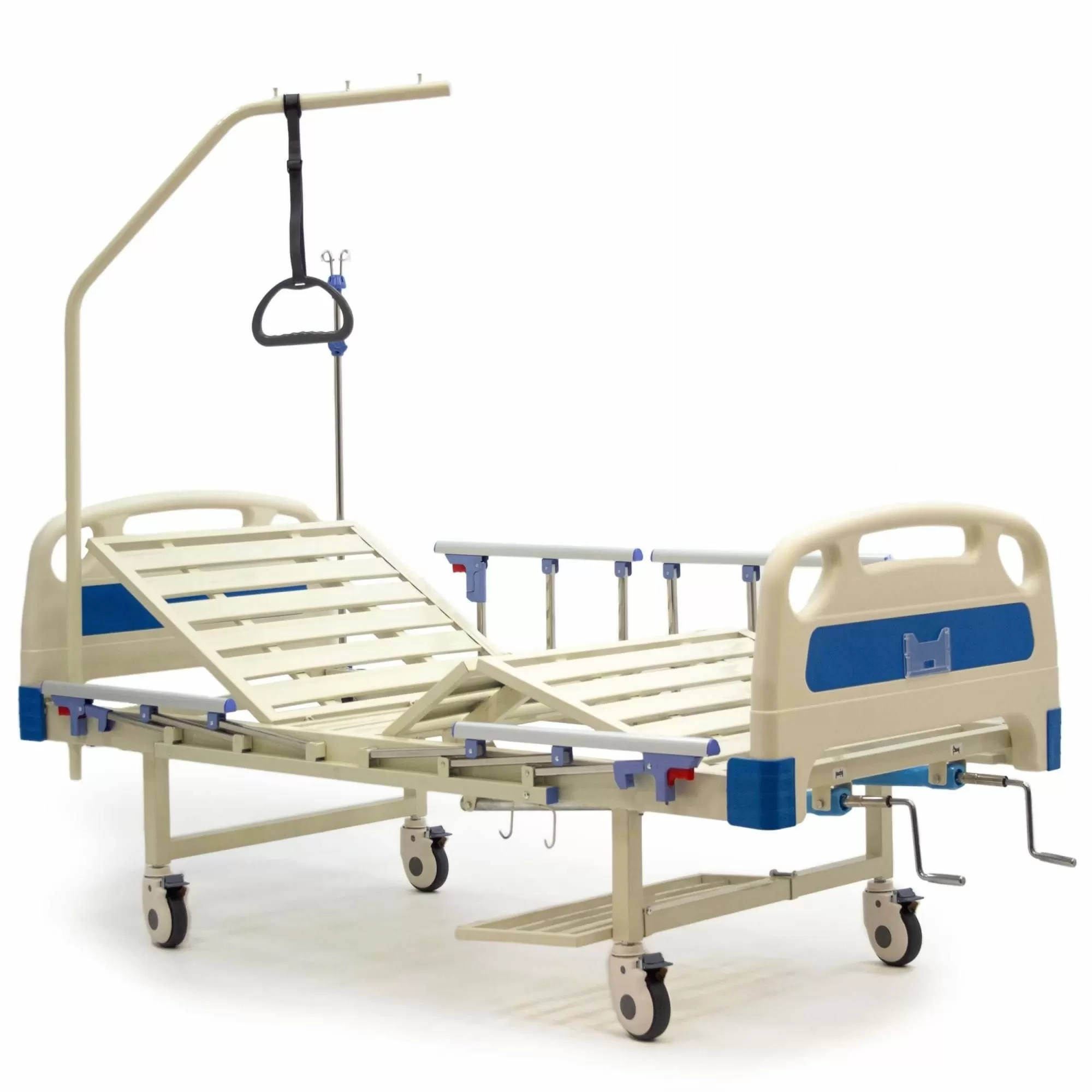 Выдвижные регуляторы положения ложа расположены в ножной части кровати, что позволяет персоналу легко регулировать положение ложа.