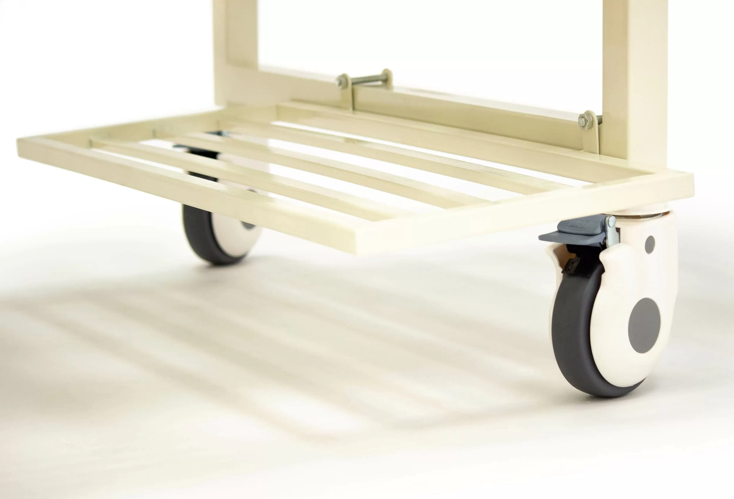 - Колёса - самоориентирующиеся, стальные, с резиновым покрытием и широкими пластиковыми корпусами, диаметр 125 мм