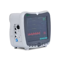- Монитор измеряет и выводит показатели ЭКГ, ЧСС, NIBP, SpO2, частоты пульса, RESP – респирация (частота дыхания (RR) и дыхание (импеданс или носовая трубка) в виде графика), TEMP – температура.
