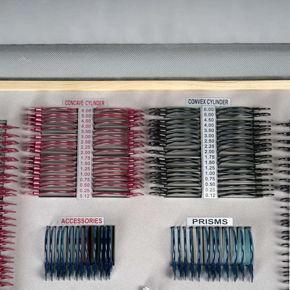 - Для проверки косоглазия и скрытого косоглазия, а также для тренировки структур глаз в наборе представлены призматические линзы. В набор входят очковые призмы от 0.50 пр дптр до 10.00 пр дптр