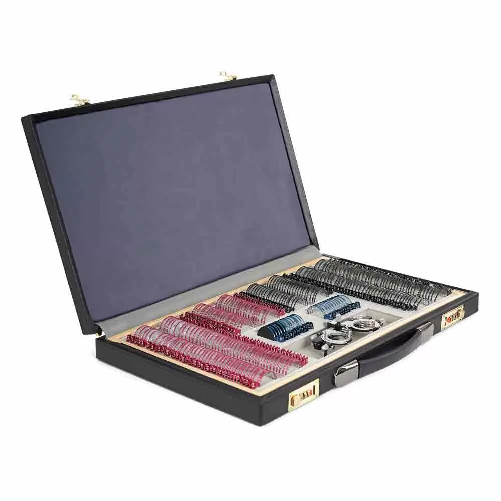 - Вспомогательные линзы, предназначенные для различных вспомогательных исследований зрения: точечная и щелевая диафрагмы, матовая пластина, полуматовая пластина, цилиндр Мэддокса, линза с перекрестием, красный и зеленый светофильтры, скрещенные цилиндры, плоскопараллельная пластина.