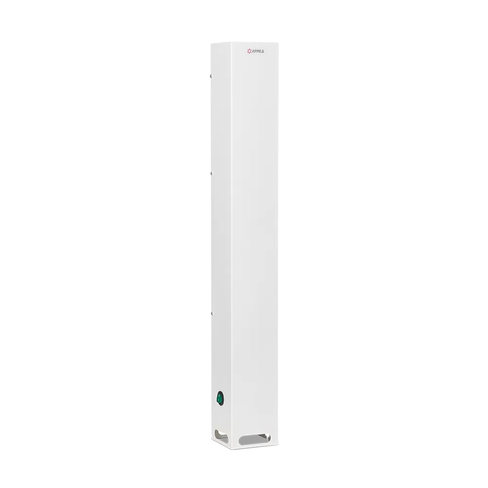 - Рециркулятор имеет компактный и узкий корпус из прочного металла с порошковым покрытием. Он надежно защищает УФ-лампу от ударов и повреждений.