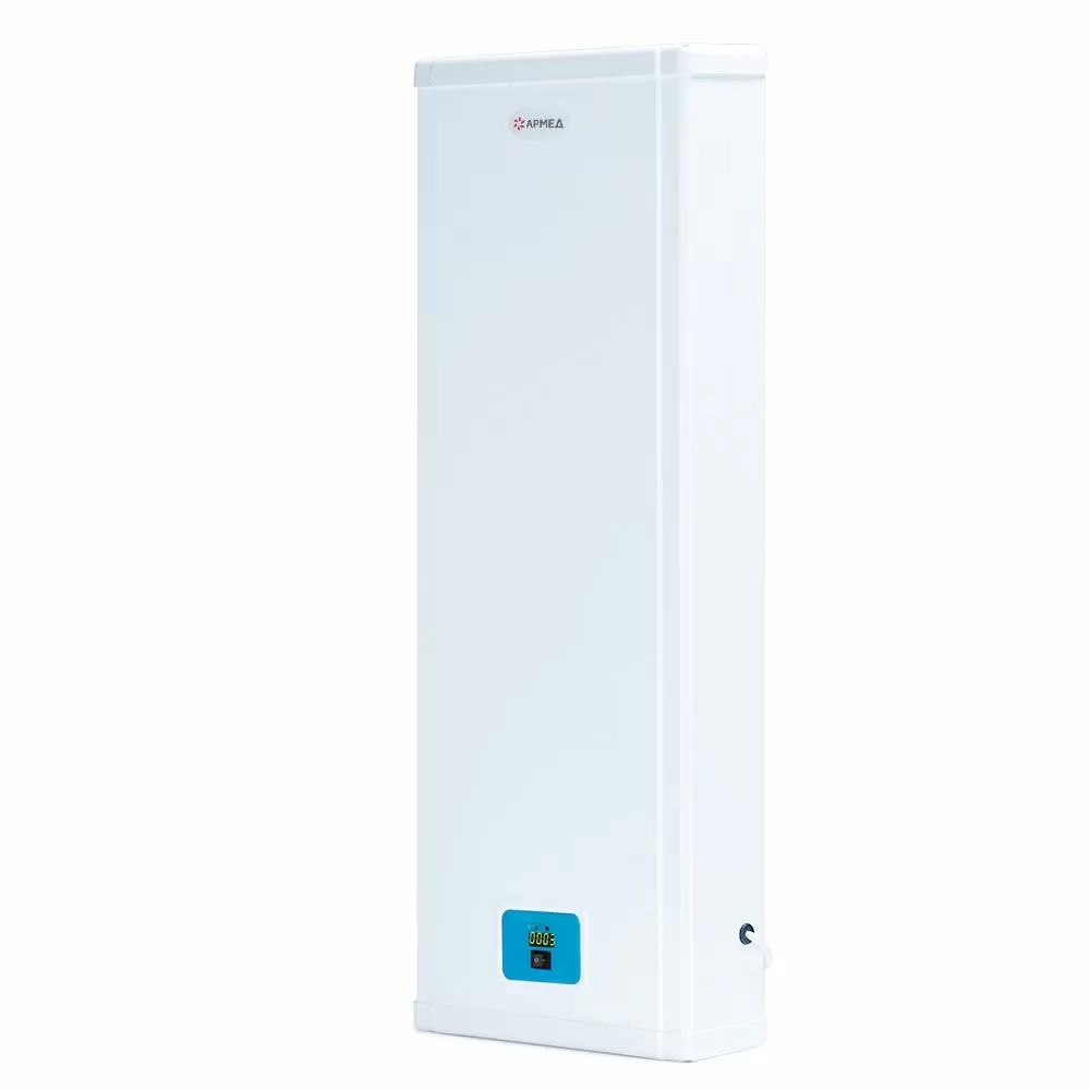 - Модель Армед 5-115 МТ избавляет воздух не только от болезнетворных бактерий и вирусов, но и от пыли и других крупных частиц: в нижней части корпуса встроены воздушные фильтры.