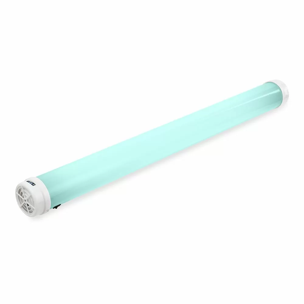 В рециркуляторе установлена бактерицидная лампа мощностью 30 Вт. Корпус выполнен в эффектом небесно-голубом цвете, который удачно подойдет для установки дома, в детском учреждении, в офисе с подходящим интерьером. Высота корпуса составляет 107 см, поэтому наиболее подходящее его расположение на полу. Для профилактики прибор можно включать на 1-2 часа в день, а при заболевании людей или большой проходимости можно оставлять включенным на целый день.