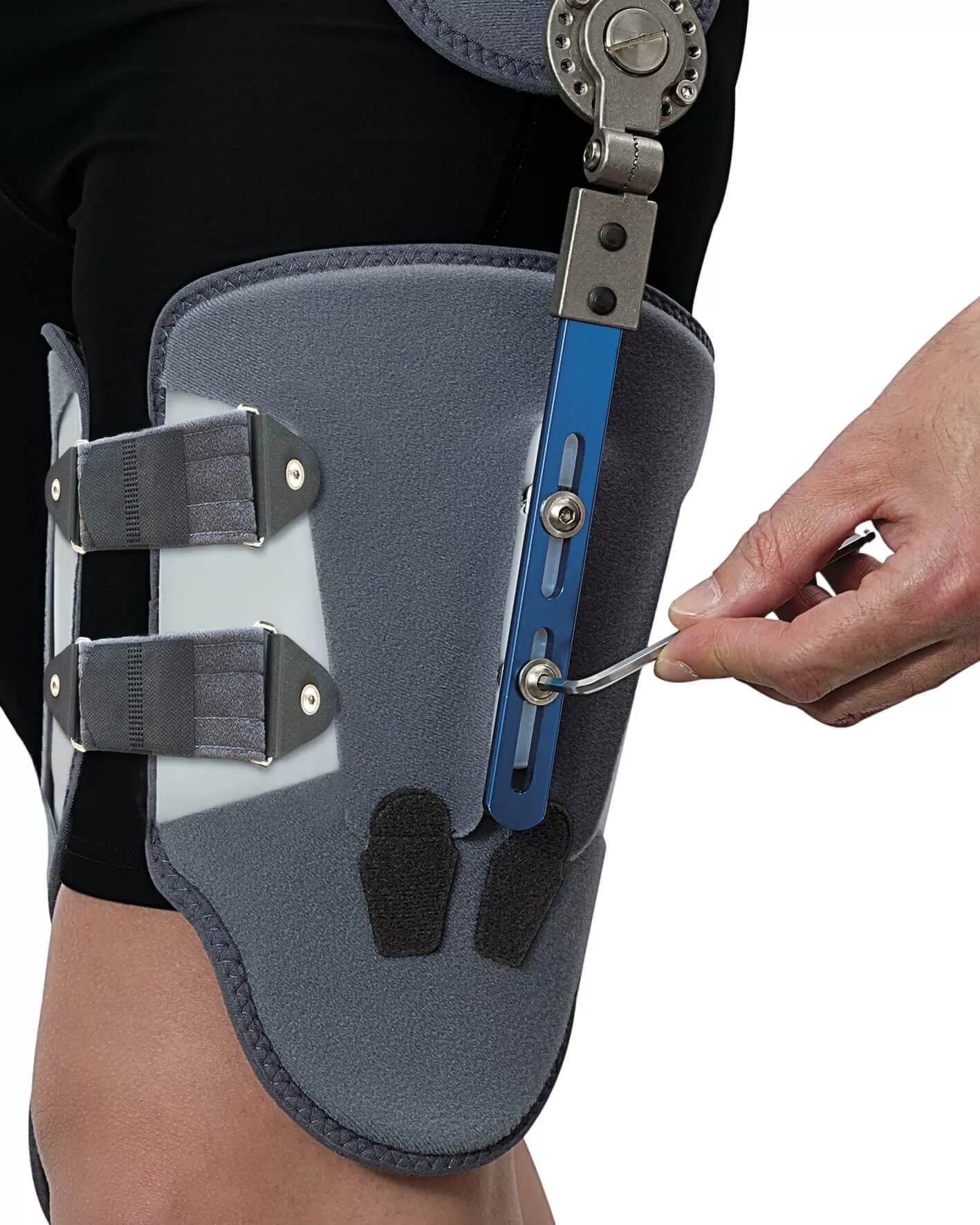 - Предусмотрена регулировка оси вращения бедренной части относительно тазобедренного сустава.