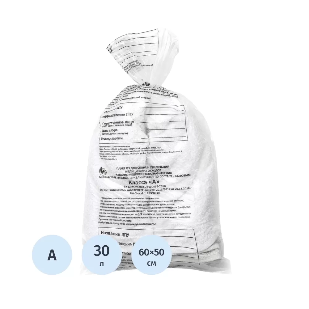 - Объём пакета составляет 30 л, размер: 50×60 см.
