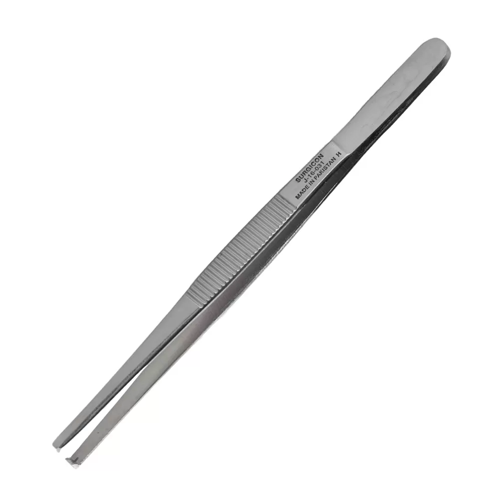 Пинцет хирургический для прочного удержания захваченной ткани, одна бранша которого имеет на конце два зубца, а вторая - один зубец, совмещающийся при смыкании пинцета с впадиной между зубцами первой бранши. Предназначен для расширения операционной раны, фиксации и оттягивания тканей.- Тип инструмента - зажимной