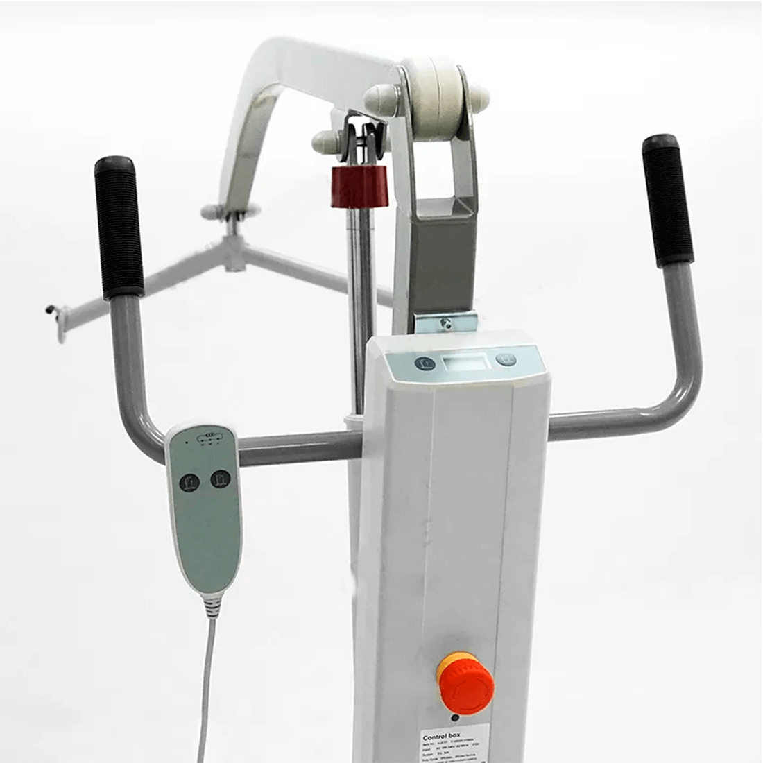 Стрела, а так же универсальный подвес, рассчитанный на среднюю комплекцию пользователя уже в комплекте поставки. Почти бесшумный электропривод, сообщающий подъёмнику более чем солидную грузоподъёмность в 150 кг. Всё это дополнено кнопкой аварийной остановки и возможностью спуска на аварийном источнике питания.