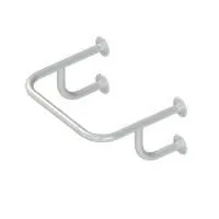 Поручень четырёх опорный настенного крепления. Диаметр фланцев 85 мм, с тремя крепежными отверстиями под шурупы диаметром 4 мм в каждом из них.