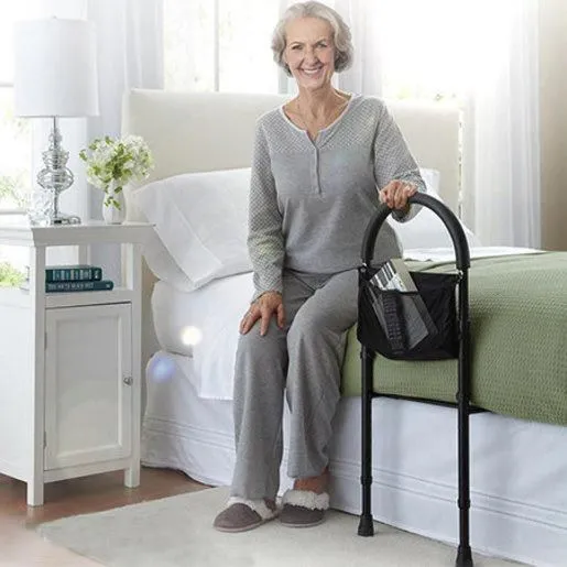 Поручень прикроватный предназначен для людей с инвалидностью, пожилых или людей, проходящих реабилитацию после травм и болезней. Обеспечивает дополнительную поддержку для людей испытывающих трудности при вставании с кровати. Конструкция регулируется по высоте. Поручень выполнен из стали, оборудован ремнем для пристегивания к кровати. Ножки оснащены резиновыми наконечниками против скольжения.